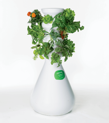 The Farmstand’s design also boosts efficiency at home. The tallest Farmstand, which holds 36 plants, yields what you’d expect to harvest from 40 square feet of raised beds. Crops grown in the vertical planter use 95 percent less water than crops grown in soil because in the closed system, not as much water is lost to runoff and evaporation. And harvesting your own fruits and veggies right when you want to eat them also reduces food waste—an important bonus given that up to 40 percent of food in the US gets thrown away instead of eaten.