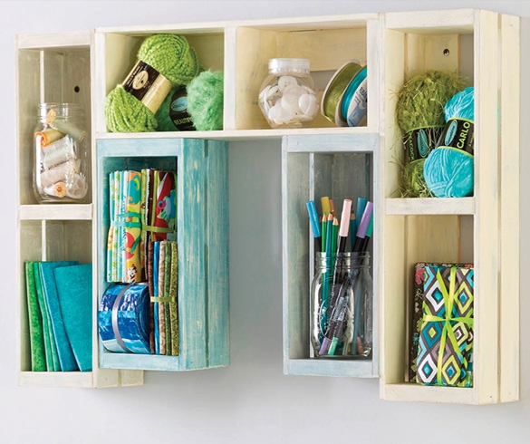 Making the most of your space – including your walls – is the key to successful organizing. Channel your inner creativity with help from the crafting experts at Jo-Ann Fabric and Craft Stores and add chic style to your storage with distressed wooden boxes hung to create artful, cubby shelves or this hanging bulletin board, which uses cleverly stylish clothespins and clips to protect your treasured photos and messages from thumbtack punctures.