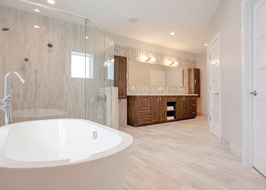 Upscale practicality. Little touches that may have once gone unnoticed are now trending as opportunities to add elements of style. For example, curbless showers with offset lineal drains are preferred to traditional centered circular versions. Similarly, homeowners are upping the ante with lighting such as fixtures integrated with fans and mirrors, and even below floating vanities for ambient light at night. One more place you might find lighting: on the bidet, which is also an increasingly hot addition in the master bath.