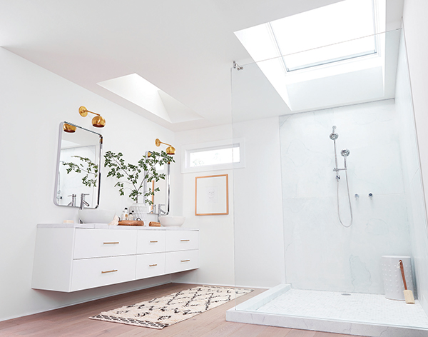 Also consider upgrades that can increase natural light and fresh air without compromising privacy, such as the addition of skylights to your ceiling, or “fifth wall,” which can completely change the lighting dynamic of the room. In addition to balanced, natural light, skylights like those from Velux can open to help refresh your space and keep it odor- and moisture-free.