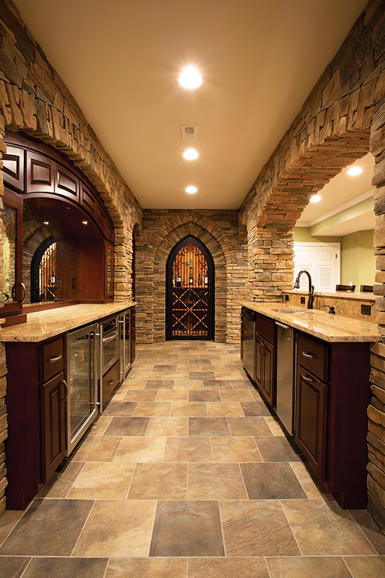 Bar Surrounds: This feature tends to be a focal point in its own right but adding brick or stone can make your bar area a real showstopper while capturing the color tones of the rest of the room.