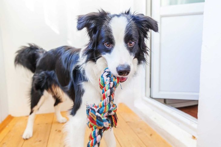 Ropes and chewing toys made from natural fibres such as cotton or twine yarn, or wool, are greenest (and compostable!). If you opt for plastic toys, ensure they are free of bisphenol A (BPA) and phthalates (they are endocrine disruptors). Visit thrift stores—some raise money for animal shelters—for used plush toys (without beads), blankets, food and water bowls, and other accessories.